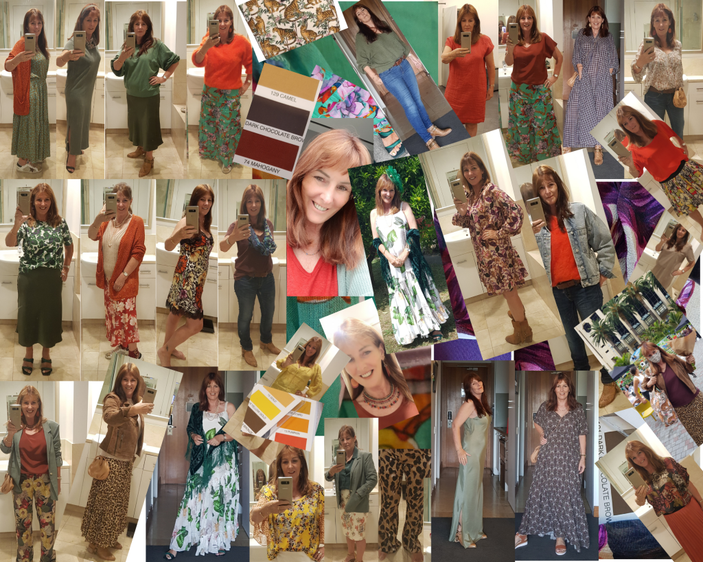 We were then coached on how to shop, and where to shop. Responsibly. Sustainably. I had never shopped for clothes on-line before because I’d been living in Bali where any imported items are subject to corrupt and unregulated, outrageously high import duties. Soon, however, browsing for clothes and inspiration on the internet playground was to become my new hobby and my autumn colour swatch wallet was to become my new tool. My mind was opened to styles and looks that I’d never considered before; I was brave enough to step out of my comfort zone, and I relished it. I even got my too-dark, home-dyed hair cut, restyled, and coloured with “gold highlights and warm chestnut undertones”.